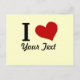 Personalized I heart postcard that you add your custom text. You can add a I love anything message to mugs, t shirts, magnets, totes,buttons,mouse pads, keyrings, stickers and more.