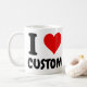 Express your style with this customizable "I Love" Coffee Mug! You can personalize this tee by adding your name, a favourite place, or anything you love.