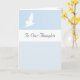 White Bird in Flight on Pale Blue This understated card is titled 'In Our Thoughts' (or customize to 'In Our Prayers' if preferred). In pale blue with the hopeful message of a white dove in flight, it is a gentle way to express what words cannot. The inside message is also fully customizable.