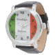 Show your Italian heritage in your watch with this fully customizable design that features a modern Italian flag design. Change the text to anything you want like a name, restaurant or different location. Makes great gift for your favourite Italian that you can't find in a store. Design available for all styles of watches.