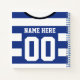 This design is an soccer (football) / rugby / sports style jersey with a v-neck collar and royal blue horizontal hoops / stripes, the background colour can be changed, just click on 'CUSTOMIZE'.