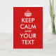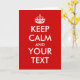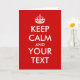 Customizable Keep calm and carry on greeting cards. Cute vintage card for friends and family. Personalizable template text and custom background colour. ie red. Create your own keep calm and carry on parody.
