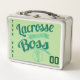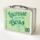 Script design in green tones with the text LACROSSE LIKE A BOSS and a lacrosse stick and ball graphic.