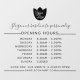 Simple professional business opening hours to personalize. Add your own logo and your text.