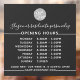 Classy professional business opening hours sign with black background to personalize. Add your own logo and your text.