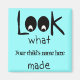 Customize this magnet with your child's name and proudly display their artwork! Text reads: "Look What (add your child's name) made". Makes a great stocking stuffer!