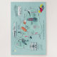 An illustrated map of the Hawaiin island of Maui featuring local architecture, flora and fauna, vacation spots, and local cuisine. You can personalize this wonderful memento of your vacation!