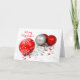 Customizable Merry Christmas card with whites and red baubles and stars on white background. Personalized Season's greetings card.