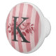 Customizable Monogram Pink Stripes Cabbage Roses Ceramic Knob