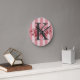 Customizable Monogram Pink Stripes Cabbage Roses Round Clock