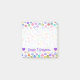 This notes design features lots of circles/dots of various colours. It also features a personalized name near the bottom in purple coloured text, between two heart shapes. [~Z0000122]