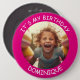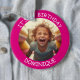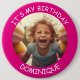 Customizable photo and name - IT'S MY BIRTHDAY - button. Hot pink frame with white text.