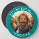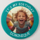 Customizable photo and name - IT'S MY BIRTHDAY - button. Teal frame with white font.