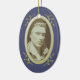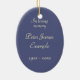 Dark Blue with Gold Leaves Oval Photo Ornament Create a cherished memory of someone special with a customizable photo ornament. Designed especially for remembrance and memorial keepsakes, this ornament has a indigo blue colour background with a gold look photo frame to which you can add a photo of your loved one. A leaf detail surrounds the frame. On the reverse is the text 'In loving memory' and customizable text boxes to add a name and dates. A lovely way to remember and celebrate a life. Available in a range of soft and classic shades for male or female memorials.