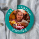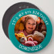 Customizable photo, name and age - IT'S MY BIRTHDAY - button. Teal frame with white font.