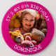 Customizable photo, name and age - IT'S MY BIRTHDAY - button. Hot pink frame with white text.