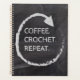 Introducing this humorous customizable planner inspired by crocheting and featuring a chalkboard design with the words "Coffee, Crochet, Repeat"! Elevate your daily routine with this charming organizational accessory that pays homage to your love of everything crochet! If you choose, the three words can be changed to your choice of three words using the editing tool.
