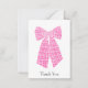 Customizable Pink Gingham Coquette Bow Thank You Card