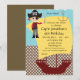 Ahoy, matey! This pirate birthday party invitation features a pirate with an eye patch holding a sword and a big pirate ship. Savvy? Completely customizable.