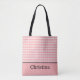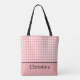 A customizable tote bag with pink and white polka dots. This design was created by Debbie Quick from Debs Creative Designs: www.debscreativedesigns.com