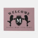 Cute door mat featuring an illustration of Poodle silhouette (Continental cut). Customizable background colour and text. Perfect gift for the dog lover or Poodle owner.