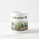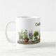 Customizable coffee mug with potted herbs on a shelf watercolor art. The art colours are a soft palette of brown, purple and green. Plenty of space above the art for a name or greeting of your choice.