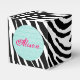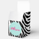 I'm not even lying to you. This Customizable Pretty Little Favour Box really is a pretty little favour box that is customizable. The design features a background of black and white zebra stripes, because, let's face it, zebras are in fact black and white. On top of that is an inner circle of robin's egg blue bricks with room for personalizing in hot pink lettering. Simply click on the "Customize It" icon and replace the existing text with your own. The back design is zebra print. Buy them for your entire inner circle of close friends. They're A-Dorable!