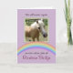 Add a Photo Rainbow Design Card -- Mauve Add your own pet's photo to this remembrance card featuring a hopeful and inspiring rainbow bridge design. Create a keepsake to remind yourself or someone you care about of a loved friend, whether furred, feathered or finned. Or send as a comforting sympathy card for someone who is coming to terms with pet loss. This card shows a pretty palomino horse but remember you can upload a picture of your own and change it to any pet: dog, cat, hamster, fish, bird, rat, bunny rabbit, horse, or a more exotic animal. All of them can rest in the peace that lies over rainbow bridge.