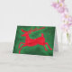 A red reindeer silhouette leaps across a green background. Classic Christmas colours done in a very painterly way with obvious brush strokes. Let this deer prance into someone's heart with this customizable Christmas card. The text inside is customizable!