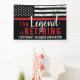 This design features a firemens flag with black and white stripes, and a thin red line stripe as well. "The Legend is Retiring" text sits above the name of the retiring firefighter, lieutenant, or chief. Celebrate in style!