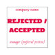 This is a simple design of a stamp. The stamp could read rejected or accepted or cancelled, which ever message or text you prefer to put on it is perfectly ok. the company name comes on top and the position of the person issuing the stamp comes at the bottom. the issuer can sign right above the position. No need for lines or dashes for the signature. Contact corporate expressions by the message box to engage for further customization.