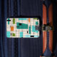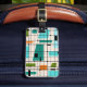 This customizable Retro Grid and Starbursts Luggage Tag is where vintage style meets modern day. It features a cream coloured background with kitschy, off kilter squares and rectangles in teal, turquoise, This light blue, orange, and avocado green. The whimsical blocks of colour are overlayed are worked into some of the grid intersections. There are also black rectangles with black vertical and horizontal lines forming a grid pattern. Black starburst designs and squares placed sporadically throughout this mid century modern tapestry of colour. The opposite side has a turquoise background and is ready for you to personalize. Grab your go-go boots and bell-bottoms and enjoy this throwback to the 1960s.