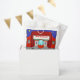 The stars are out in full force on these Customizable Retro Movie Theatre Favour Bags--both the stars in the night sky and the stars on the silver screen. This 1960's style, minimalist art design features the exterior of a classic movie house from the Golden Age of Cinema. The red building has a brilliantly lit marquee, which says, "NOW SHOWING," in red letters. Beneath the marquee, a theatre employee is ready for a crowd of movie going film buffs, which are sure to be lining up in droves. The silhouette of the clean cut, theatre worker is just visible through the aqua glass of the box office ticket booth. Not a kernel of popcorn can be found on the spotless grey sidewalk. Grey double doors flank the ticket booth. The front of the building displays black and white movie posters surrounded by dramatically lit frames. One poster shows star crossed lovers in a dramatic scene and the other shows a swimsuit clad starlet whose career is as bright as the sun she worships. Personalize for your special event! This product is from the brilliant minds at Zazzle's StrangeLittleOnion, who have brought you such cult classics as Retro Pool Party, Film Noir Martini and Retro Space Age Cartoon Couple. Critics agree; if you can only purchase one design this season, make it this one (or any of the other spectacular StrangeLittleOnion designs)!
