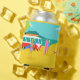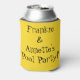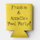 Every day can be a day at the beach with this Customizable Retro Surfer Couple Can Cooler. The 1960's style, minimalist art design features a fun-loving, sun worshiping, thrill seeking couple all ready to catch a wave. The setting is a tropical, island oasis with a beach of golden sand, swaying, green palm trees, a sparkling, peacock blue ocean, and an aqua sky. In the distance, we can see a teal volcanic island, which is dormant for the time being. Back on the beach, we can't help noticing the sweet ride that brought our couple to their dream destination. It's a mid century modern, red and white van with an orange and yellow surfboard strapped to the top. Though we can't be sure, it's fair to assume that the inside of the van features groovy, shag carpeting and the smell of incense! Surfer Dude and Beach Babe have matching sun-kissed tans, sun-bleached hair, and blue, tiki patterned swimsuits. Surfer Dude is holding a blue surfboard. Beach Babe is standing beside her two-toned, pink surfboard. Lying nearby, there is a red and white beach ball, waiting to fulfil its summer destiny. The opposite side of this can cooler is yellow with plenty of room for personalizing! Catch some waves and share some love with this kitschy summer design!