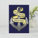 Add all your yacht or boat party details to this customizable metal-looking ship anchor design. Easily change the text on the anchor and add all your party details to the back. It's the perfect modern nautical design for a boat lover / owner. If you sail your own yacht or enjoy boating / yachting or you are a ship sea captain / mariner, let everyone know with this stylish anchor art. "Customize" to make more detailed changes to fonts or colours.