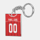 Easy to edit soccer / football / sports jersey keychain, just use the boxes to the right of the image to insert your own choice of name and number on the back. The design of this jersey is red with white v-neck trim. The background colour can be edited, just click on CUSTOMIZE.