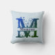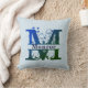 Fancy split 'M' monogram in blues and greens with silhouettes of fancy flourishes and butterflies. Add your own name as centre text.