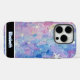 This vibrant phone case showcases a mesmerizing, heavily textured abstract design with bold impasto brushstrokes in swirling purples, blues, pinks, oranges, and yellows, accented with star-like white forms)]. The cosmic, painterly aesthetic adds an artistic flair to your device. A sleek black bar at the bottom offers personalization with a name like "Elizabeth"; if you don't want a name, you can remove it and any other elements you don't like from within the design tool, creating your unique accessory)].