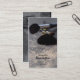 This business card has a colour photograph of some makeup brushes with some powder all around. At the bottom and on the back, you can easily customize your information. There is also a floral design on the backside.