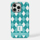 Customizable Teal Blue Green White Argyle Pattern iPhone Case
