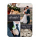 Congratulations on your wedding. The gorgeous photos from your wedding can be shared through this thank you magnet with your guests. Select your favorite four images and make this your very own. Personalize it with your names and wedding date, this fall-themed design is perfect for a wedding around thanksgiving and other autumn nuptial. Chalkboard blocks for an added rustic touch.