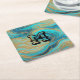Paper coasters with turquoise, blues, and gold colours, abstract art. You can customize it with your initial or leave it off,