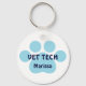 This keychain displays a blue paw print and can be customized with the text of your choice.