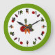 Perfect for a kitchen, watercolor carrots, tomatoes, eggplants and broccoli circle around the dial of this cheerful, decorative wall clock. The same vegetables are grouped together on a white background at the centre of the plate. The edge colour can easily be customized by changing the background colour. From my original digitally-created image.