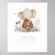 A gentle watercolor illustration of a baby elephant cuddling a soft teddy bear, painted in soothing neutral tones of beige, sepia, and soft grey. The soft brushstrokes create a tender, calming effect, perfect for a baby’s nursery. With its timeless palette and heartwarming subject, this artwork adds a touch of warmth, comfort, and love to any little one’s room.