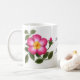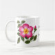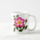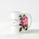 Customize this romantic wild rose mug with your own names and dates for your wedding or other occasion. Original art design of a wild rose by Carolyn McFann of Two Purring Cats Studio.