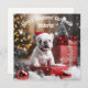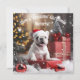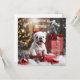 Presenting the "Winter Whiskers Wonderland Greeting Card"! Envision a delightful flat card that encapsulates the pure joy of the holiday season. The front boasts an adorable image of a joyful white French Bulldog puppy, seated in front of a beautifully decorated Christmas tree adorned with vibrant red baubles. The playful pup, with its tongue happily out, sets the scene for a heartwarming and festive Christmas celebration, surrounded by carefully wrapped presents.