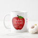 Customize a Back to School coffee mug in style with a big red apple for the teacher. Read, write, learn, discover, explore, think, reason, question and study.