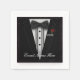 A black tuxedo with a bow tie and a red rose with a starry night background.