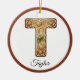 Customize Christmas Gingerbread Letter T Monogram Ceramic Ornament